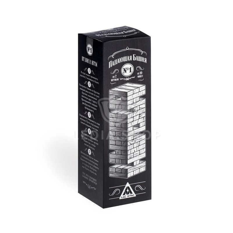 Постройте башню: каждый ряд состоит из 3 брусков, выложенных вплотную друг к другу. Каждый новый должен располагаться поперёк предыдущего. По очереди вытягивайте деревяшки из разных частей башни так, чтобы она не рухнула. Вытянутые бруски можно складывать на верхушку башни или просто убирать в сторону. Выберите, как будете играть вы. Тот, кто обрушил башню, проиграл!