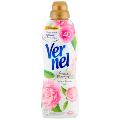 Концентрированный кондиционер для белья Vernel Ароматерапия+ Пион и Белый Чай 870мл подарит Вашему белью нежый, расслабляющий аромат, вдохновленный самой природой.Благодаря специальным аромакапсулам кондиционер для стирки Vernel позволит наслаждаться интенсивным ароматом до 140 дней.Кондиционер для белья Vernel Ароматерапия+ отвлечет Вас от повседневных забот с ароматом пиона, белого чая и нотками кедра и мускуса.