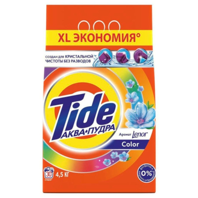 Стиральный порошок Tide "Color" отлично отстирывает одежду всей семьи. Его надежная формула превосходно отстирывает одежду, сохраняя ее цвета. Доверьте Tide стирку одежды вашей семьи, и вы будете выглядеть превосходно. Не тратьте драгоценное время на стирку — Tide с легкостью сделает все за вас. Вдобавок Tide придаст вашей одежде легкий и приятный аромат.