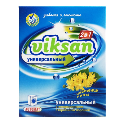 Средство моющее синтетическое порошкообразное универсальное VIKSAN автомат с кондиционером 2 в 1 Цветение липы для стирки изделий из тканей всех видов кроме шелка и шерсти в стиральных машинах любого типа, а также для ручной стирки. Эффективно отстирывает различные типы загрязнений, сохраняет цвета, для всех видов тканей. Оптимально подобранный комплекс биодобавок энзимов эффективно удаляет различные виды загрязнений белковые, жировые, крахмальные, сохраняя при этом структуру ткани. Содержит низкопенные поверхностно-активные вещества и химический отбеливатель, которые заботятся о вещах, обеспечивают их чистоту и безупречный внешний вид. Входящие в состав средства компоненты, умягчающие воду, связывают соли жесткости, защищают Вашу стиральную машину от накипи и уменьшают инкрустацию на ткани. Удобно в применении, как при ручной, так и при автоматической стирке.