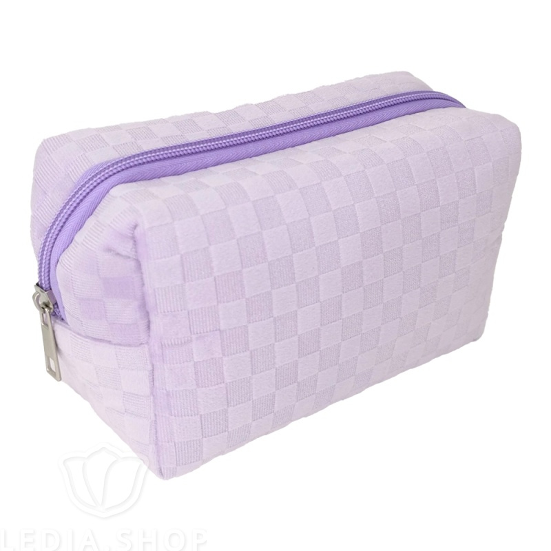 Бархатная косметичка пенал с одним отсеком на молнии, держит свою форму и является очень вместительной. В косметичке-пенале можно хранить телефон, ключи, бижутерию. Органайзер для косметики используется для женских средств личной гигиены, ванных и туалетных принадлежностей, лекарств и таблеток, а также может использоваться в качестве школьного детского пенала для канцелярии и документов маленького формата. Косметичка сиреневого цвета будет радовать вас своим мягким и приятным на ощупь материалом из ткани флок. Стильная, многофункциональная косметичка легко складывается и благодаря компактному дорожному формату поместится в сумку. Аксессуар можно использовать в качестве органайзера, клатча или дорожной аптечки. Косметичка со стильным дизайном и приятной на ощупь тканью — отличная возможность порадовать себя или близких.